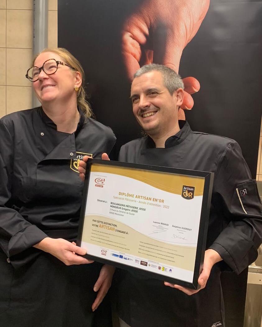 Découvrez la Boulangerie Pâtisserie Josse à Montdidier 🥐✨ Située au cœur de Montdidier, sur la place du Général de Gaulle, la Boulangerie Pâtisserie Josse est un véritable joyau local, dirigée par Grégoire et Anne Josse. Depuis plus de 18 ans, ce couple d’artisans passionnés offre à ses clients une expérience unique, alliant tradition et innovation. Une reconnaissance de qualité : Artisan en Or La boulangerie Josse est fièrement certifiée "Artisan en Or", un label qui récompense leur engagement pour la qualité, le respect des traditions artisanales, et l'utilisation de produits locaux. Cette certification garantit que tous leurs produits sont faits maison, avec une attention particulière portée à l'accueil chaleureux et au service impeccable. Des spécialités pour chaque occasion La Boulangerie Pâtisserie Josse propose une large gamme de pains, viennoiseries, et pâtisseries raffinées. Parmi leurs créations, les charlottes aux fraises et au chocolat, particulièrement appréciées lors des fêtes de Pâques, ou encore leurs montages en chocolat, témoignent du savoir-faire artisanal de la maison. Pour les grandes occasions comme les mariages, anniversaires ou baptêmes, l’équipe Josse réalise également des commandes sur mesure. Horaires d'ouverture 🕒 - Lundi, mardi, jeudi, vendredi, samedi : 07h30 – 13h00, 14h30 – 19h00 - Dimanche : 07h00 – 13h00 - Fermé le mercredi Services et accessibilité En plein centre de Montdidier, la boulangerie est facilement accessible, et elle offre un cadre idéal pour un arrêt gourmand. Vous pouvez également passer vos commandes pour des occasions spéciales directement sur place ou par téléphone. 📍 Adresse : 3 Place du Général de Gaulle, 80500 Montdidier 📞 Téléphone : 03 22 78 01 41 Venez découvrir pourquoi la Boulangerie Pâtisserie Josse est une adresse incontournable pour les gourmets de Montdidier et des environs !